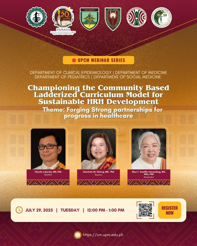 The Department of Clinical Epidemiology, Department of Medicine, Department of Pediatrics, and Department of Social Medicine of the UP College of Medicine warmly invite you to our upcoming webinar titled: