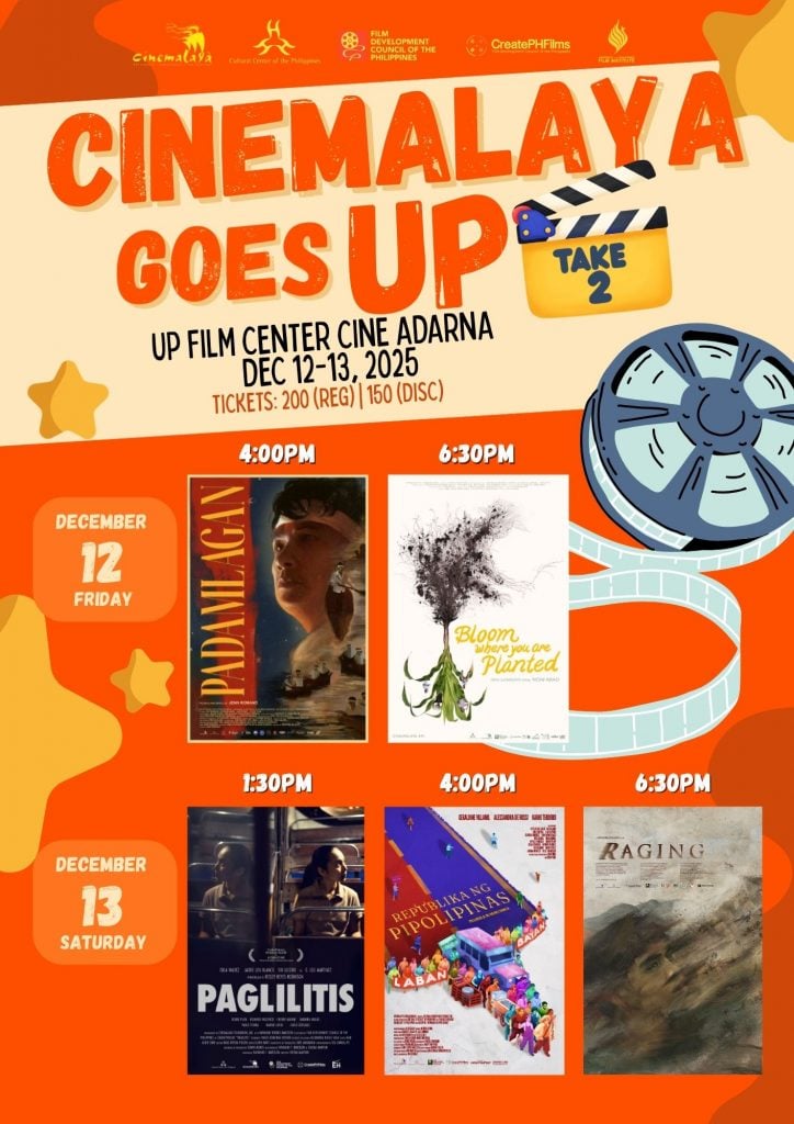 December 2025 at UPFI Film Center with encore for Cinemalaya 21 Goes UP featuring films of emancipation for a manifold human rights advocacy. Make that trip you can’t miss for a big-screen rendezvous on December 12 Friday and December 13 Saturday only at Cine Adarna!