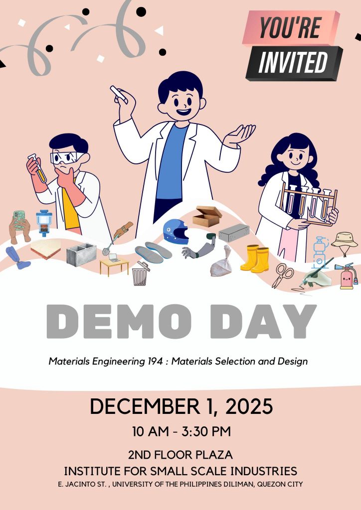 Get ready to witness creativity, engineering, and innovation all in one place! Our Materials Engineering students are presenting their product designs for MatE 194 : Materials Selection and Design. You’re invited to be part of the experience.