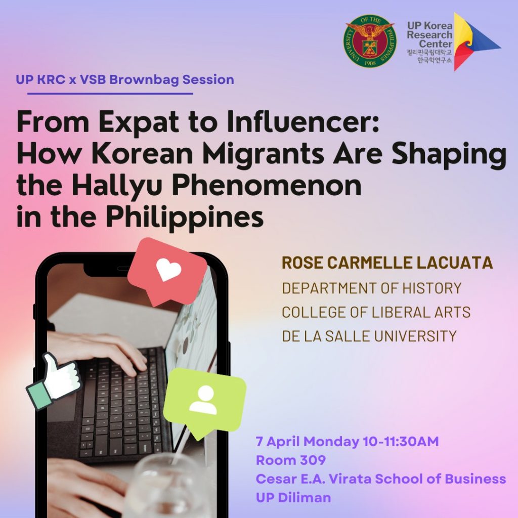 [UPKRC x VSB Brownbag Session] From Expat to Influencer: How Korean Migrants Are Shaping the Hallyu Phenomenon in the Philippines