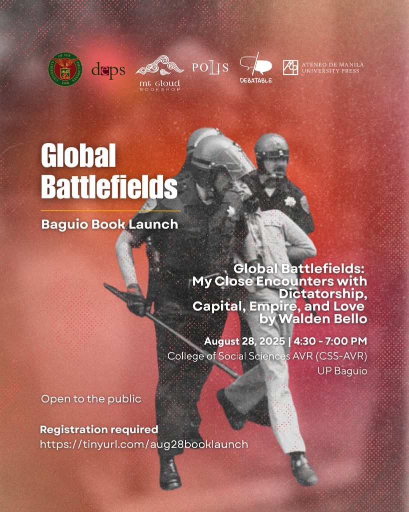 This August 28, we are honored to host the renowned activist and scholar Walden Bello for the Baguio book launch of his memoir, Global Battlefields: My Close Encounters with Dictatorship, Capital, Empire, and Love.