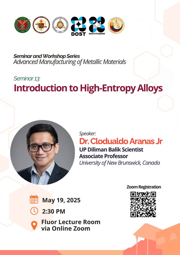 We are pleased to invite you to a seminar by Dr. Clodualdo Aranas Jr. on the topic ‘Introduction to High-Entropy Alloys (HEA)’