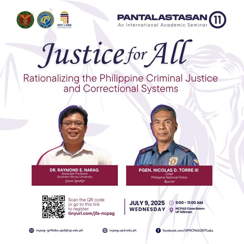 Join us for a thought-provoking lecture featuring Dr. Raymond E. Narag, Associate Professor at Southern Illinois University and expert in Southeast Asian criminal justice reform. Dr. Narag will share insights on the complexities and current developments in our justice and correctional systems, including strategies for meaningful and systemic reform.