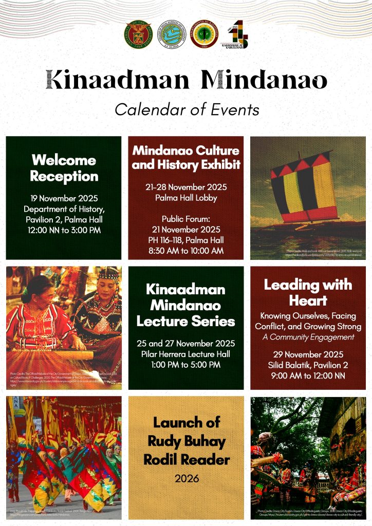Inihahandog ng UP Departamento ng Kasaysayan ang Kinaadman Mindanao—isang proyekto sa ilalim ng UPD Culture Bearers-in-Residence Program ng UP Diliman Office of the Vice Chancellor for Academic Affairs (UPD-OVCAA).