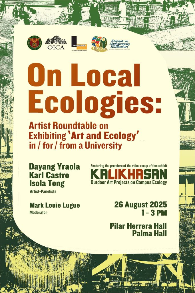 Sa darating na Agosto 26, samahan ang mga lumikha ng mga instalasyong naging bahagi ng Kalikhasan: Outdoor Art Projects on Campus Ecology sa On Local Ecologies: Artist Roundtable on Exhibiting ‘Art and Ecology’ in / for / from a University. 🫴🏻🌱