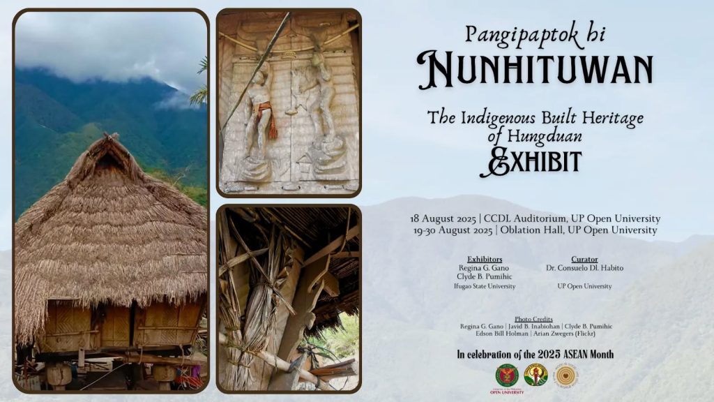 The “Pangipaptok hi Nunhituwan – The Indigenous Built Heritage of Hungduan” exhibit features a photo gallery and insights from curator Dr. Consuelo dL. Habito, Professor from the Faculty of Management and Development Studies.