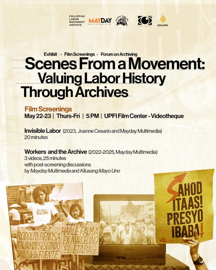 The UP Film Institute, in partnership with the Philippine Labor Movement Archive, launches its labor week starting this May 20, Tuesday, at the UPFI Film Center.