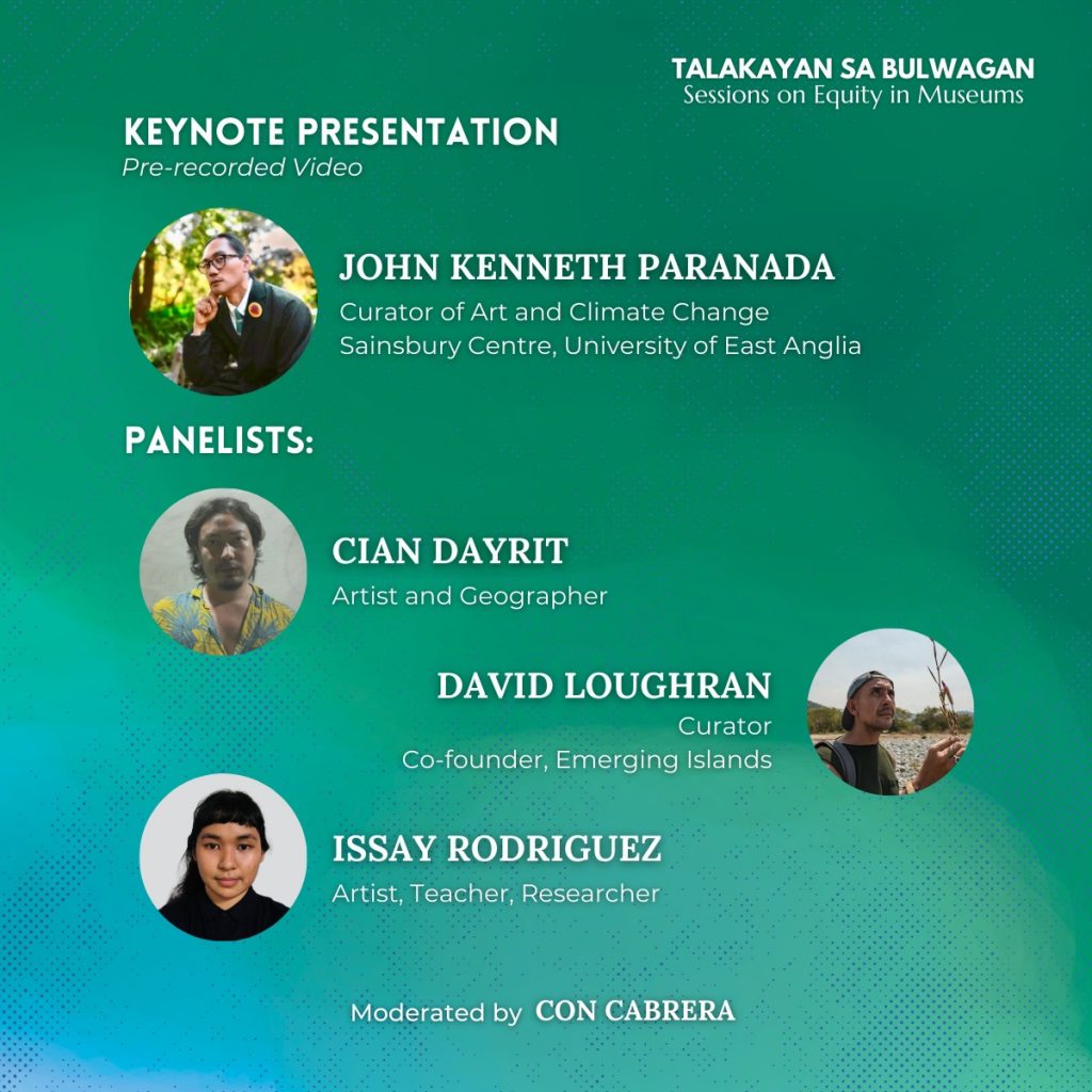 For this session, we’ll be dwelling on the potentials of art in promoting climate awareness and ecological mindfulness. We will be having a keynote presentation (pre-recorded video) from John Kenneth Paranada</strong,> Curator of Art and Climate Change at the Sainsbury Centre, University of East Anglia; and a roundtable discussion with the following contemporary art practitioners: