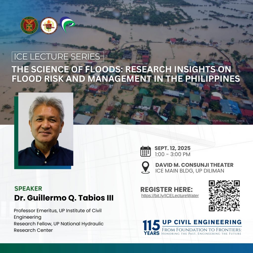 In celebration of the 115th anniversary of the UP Civil Engineering program, the Water Resources and Coastal Engineering Group proudly presents the third installment of the UP ICE Lecture Series: