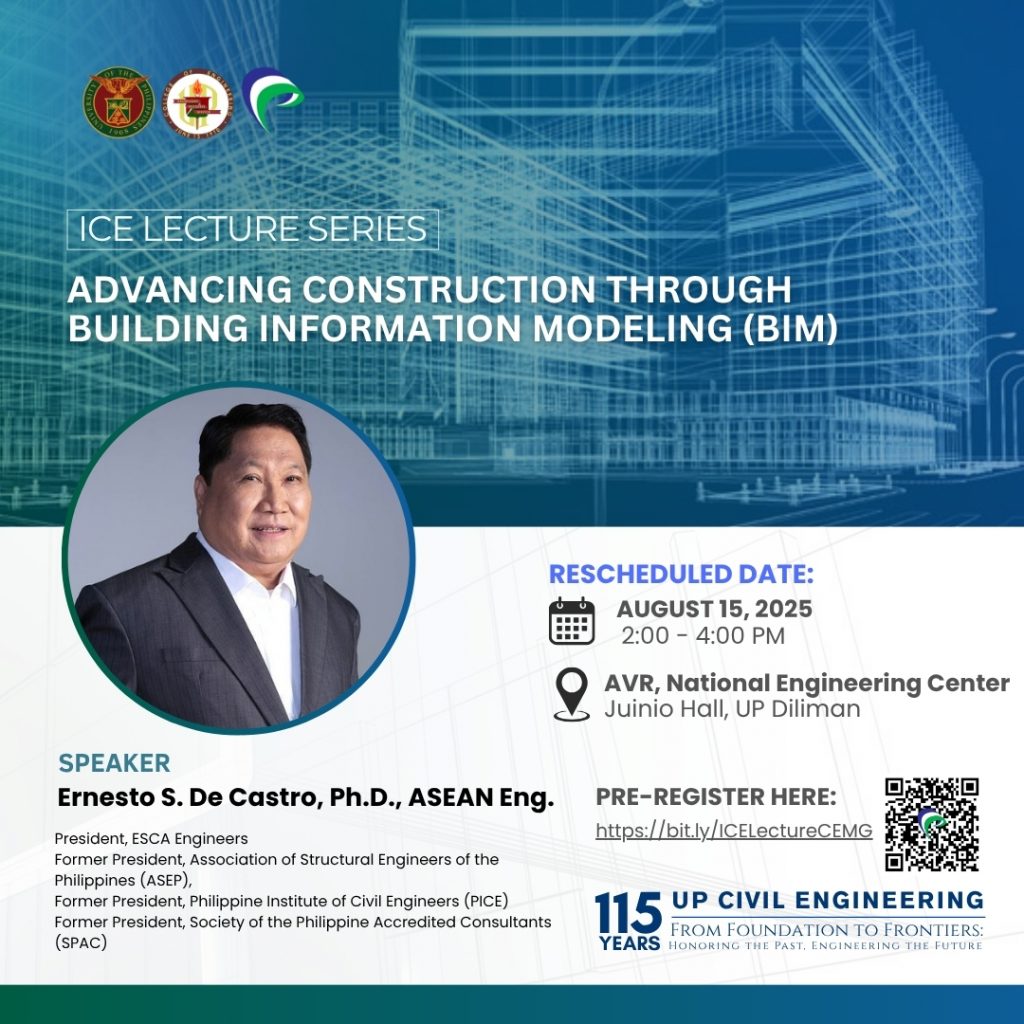 In celebration of the 115th anniversary of the UP Civil Engineering program, the Construction Engineering and Management Group proudly presents the second installment of the ICE Lecture Series: