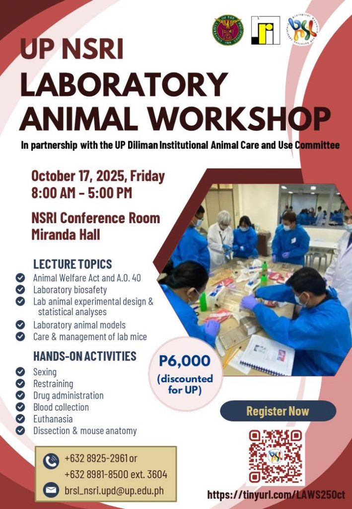 The BRSL will offer Laboratory Animal Workshop on October 17, 2025. The workshop includes lecture and hands on activities relevant to animal handling in the laboratory setting.