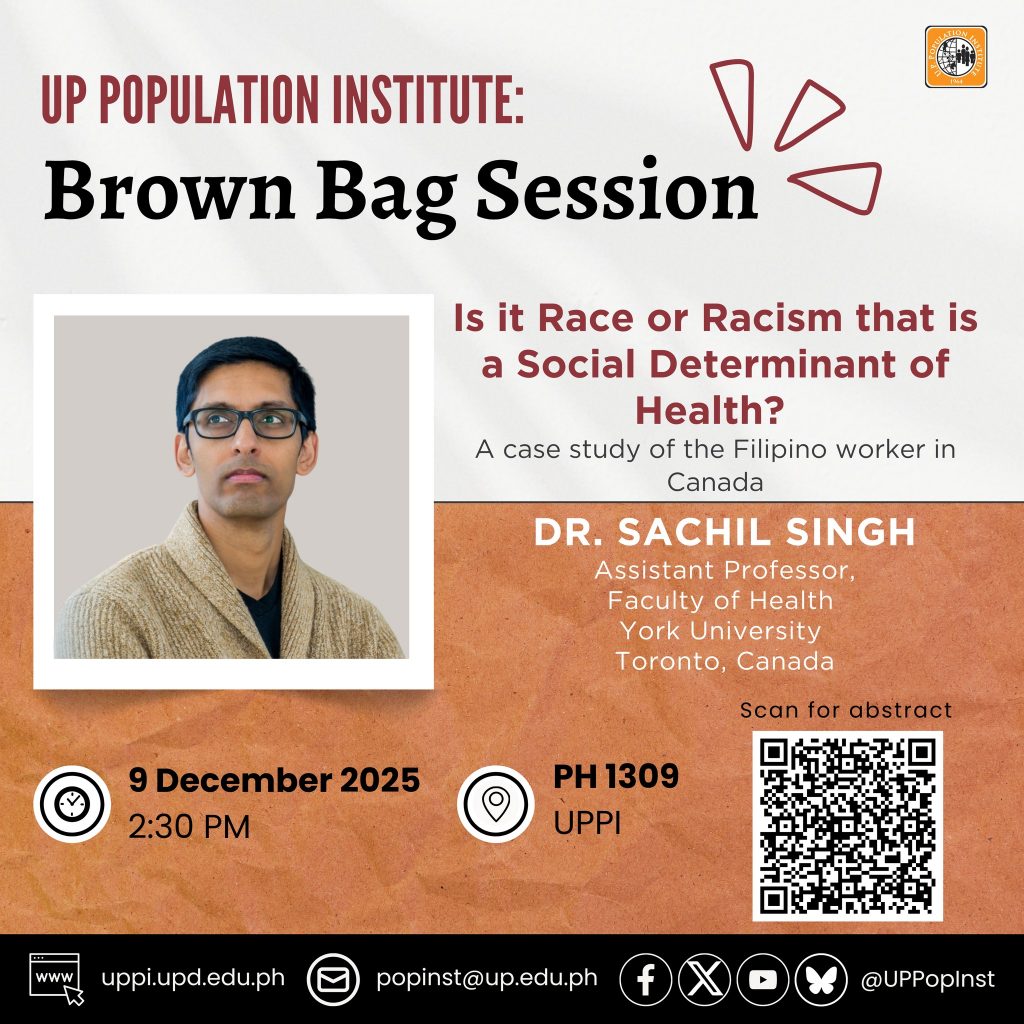 The UP Population Institute will feature Dr. Sachil Singh of York University, Canada, for next month’s brown bag session. His study answers the crucial question: Is it Race or Racism that is a Social Determinant of Health?