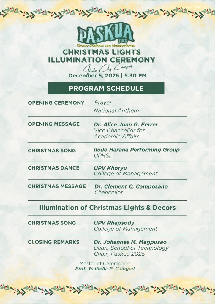 Meanwhile, come and see the lights during the Christmas Lights Illumination Ceremony at the Iloilo City campus on December 5, 2025 at 5:30 PM and be entertained by the best of the best: